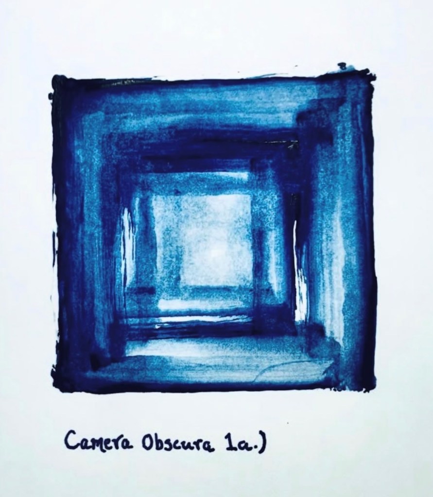 Hrönir, watercolor on paper, 8″ x 11″, 2023.