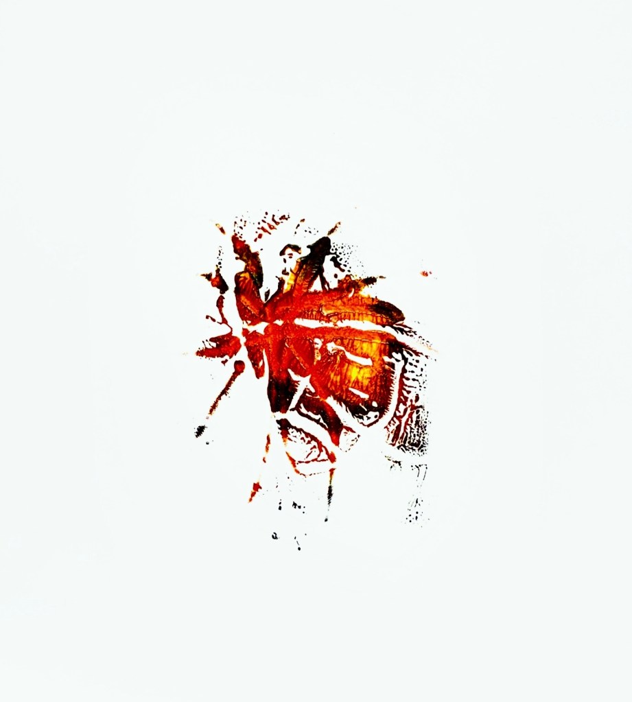 The Chimaera Dances (to one’s delight), silver emulsion with photographic exposure and acrylic on canvas, 14″ x 11″, 2022.